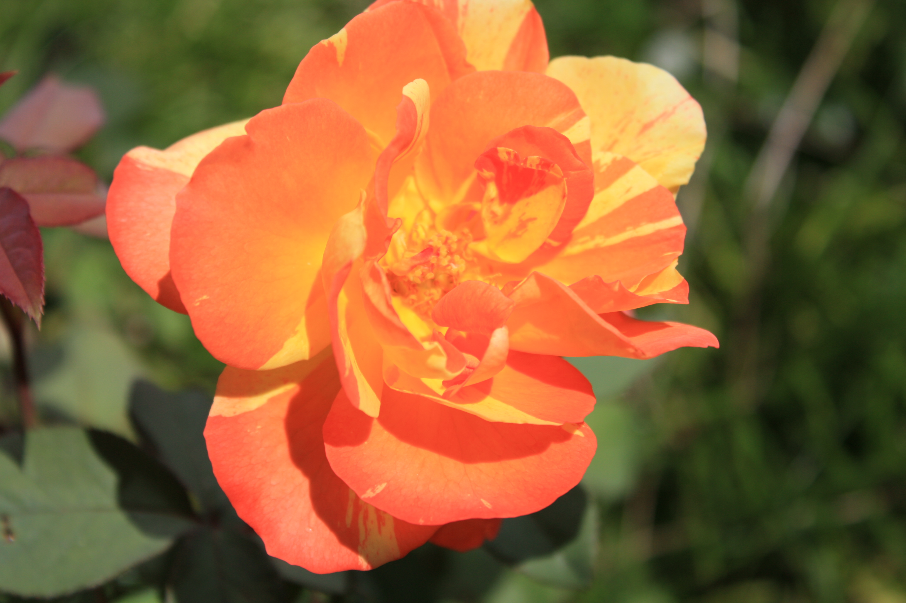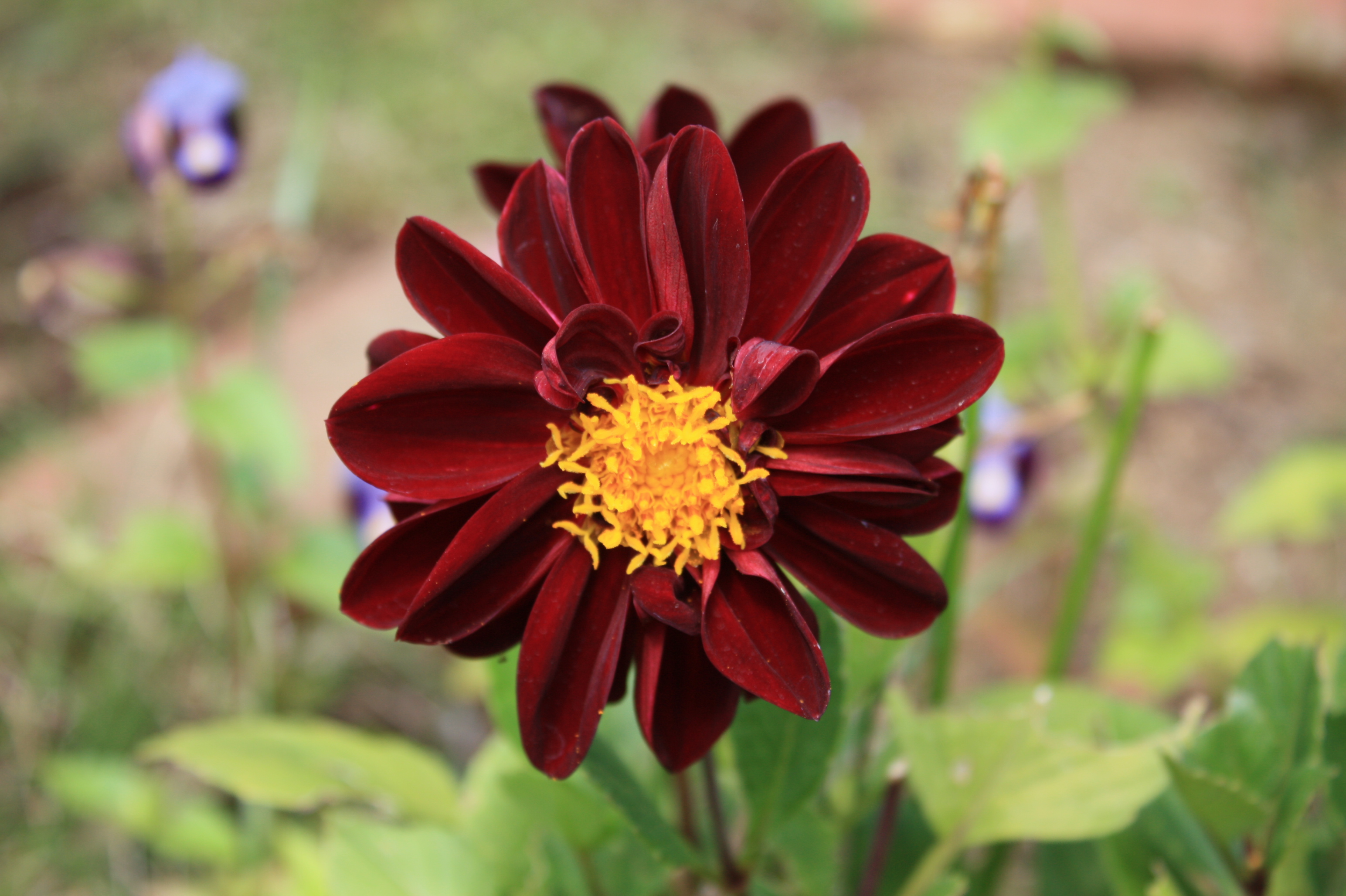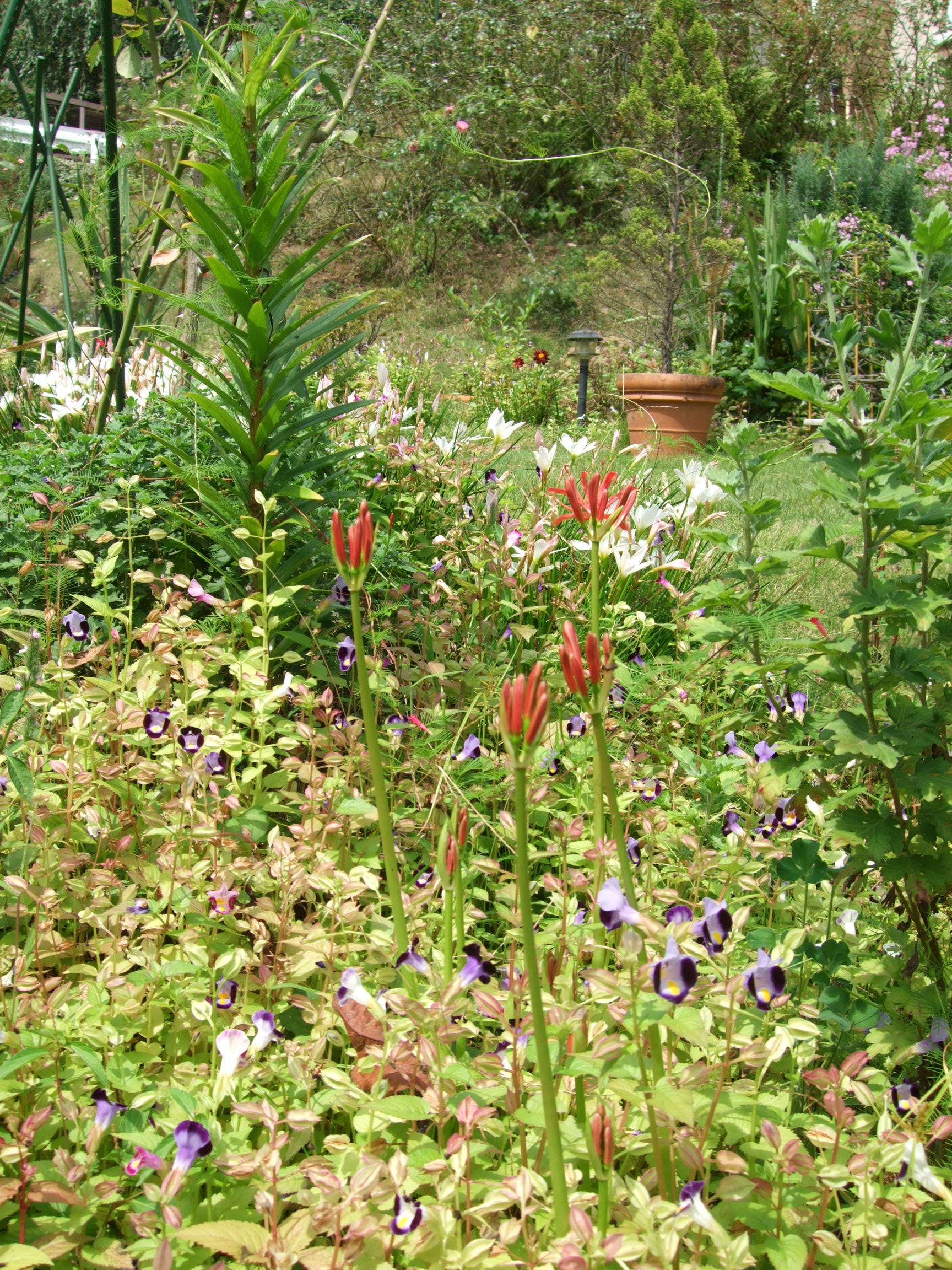 隣の真っ赤な小さな花は二日酔いでダウンした花です。