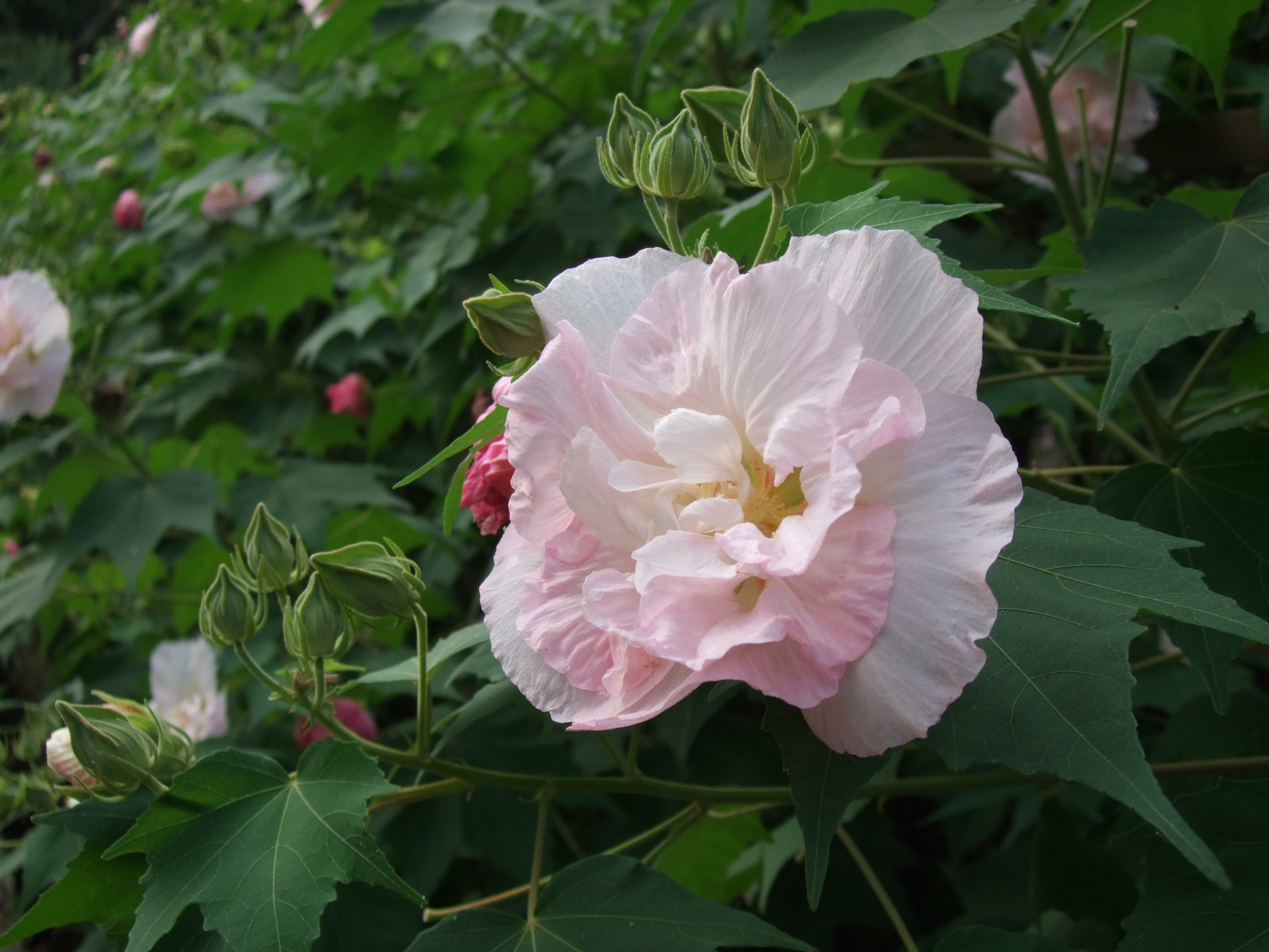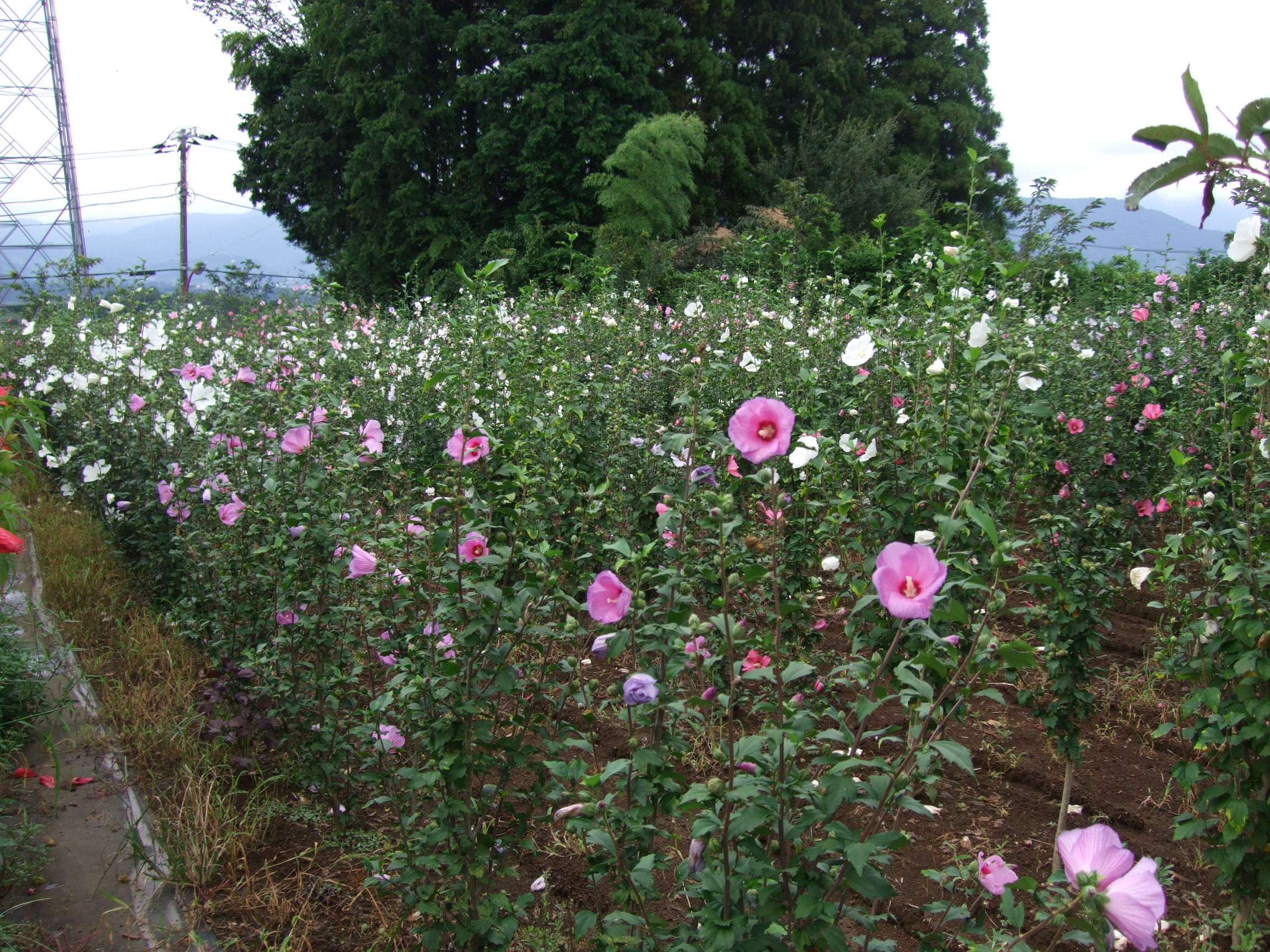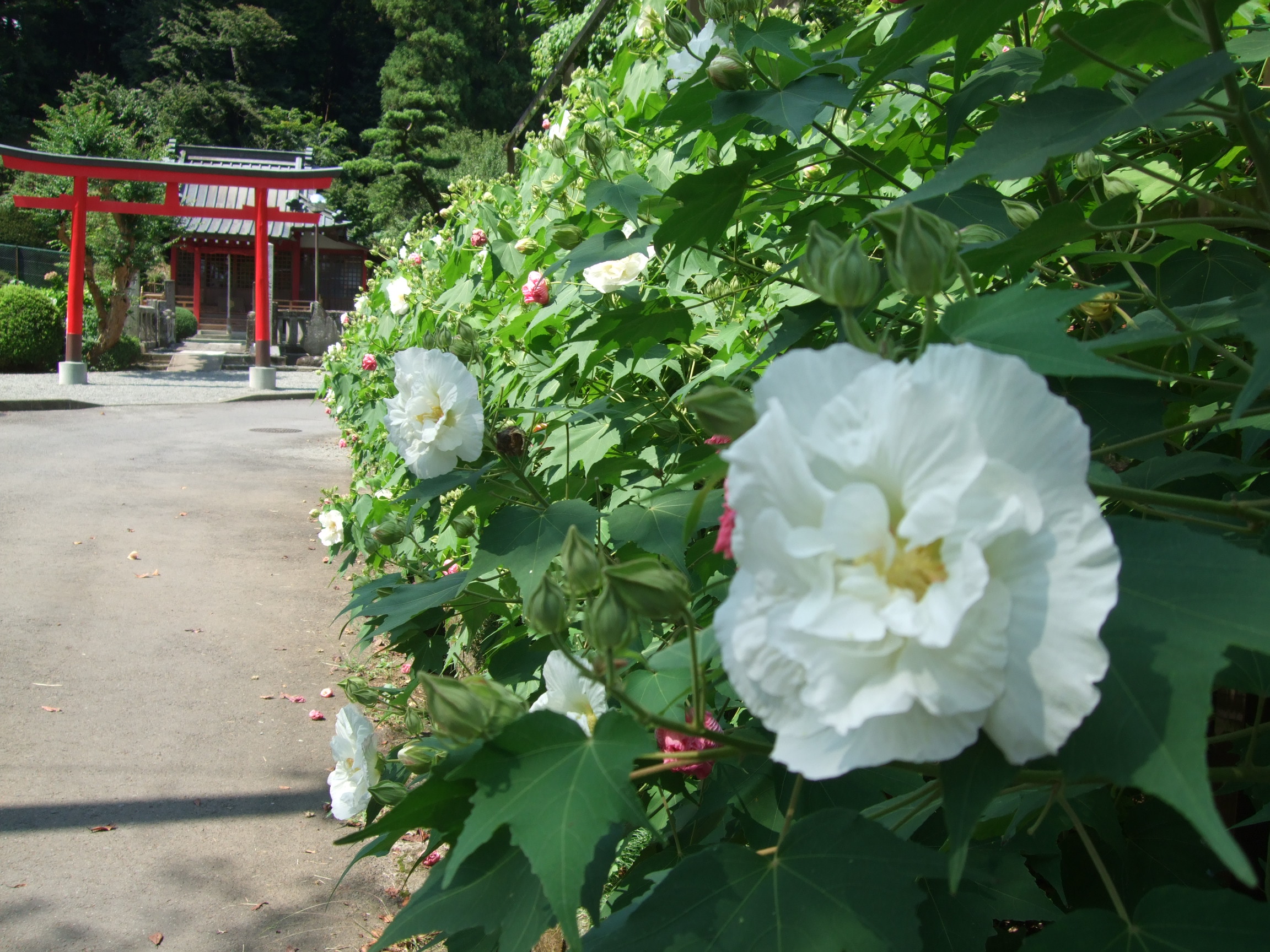 清左衛門地獄池に通じる道に酔芙蓉がたくさん植えられています。