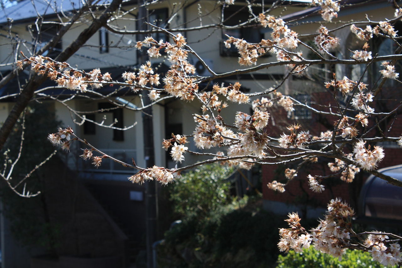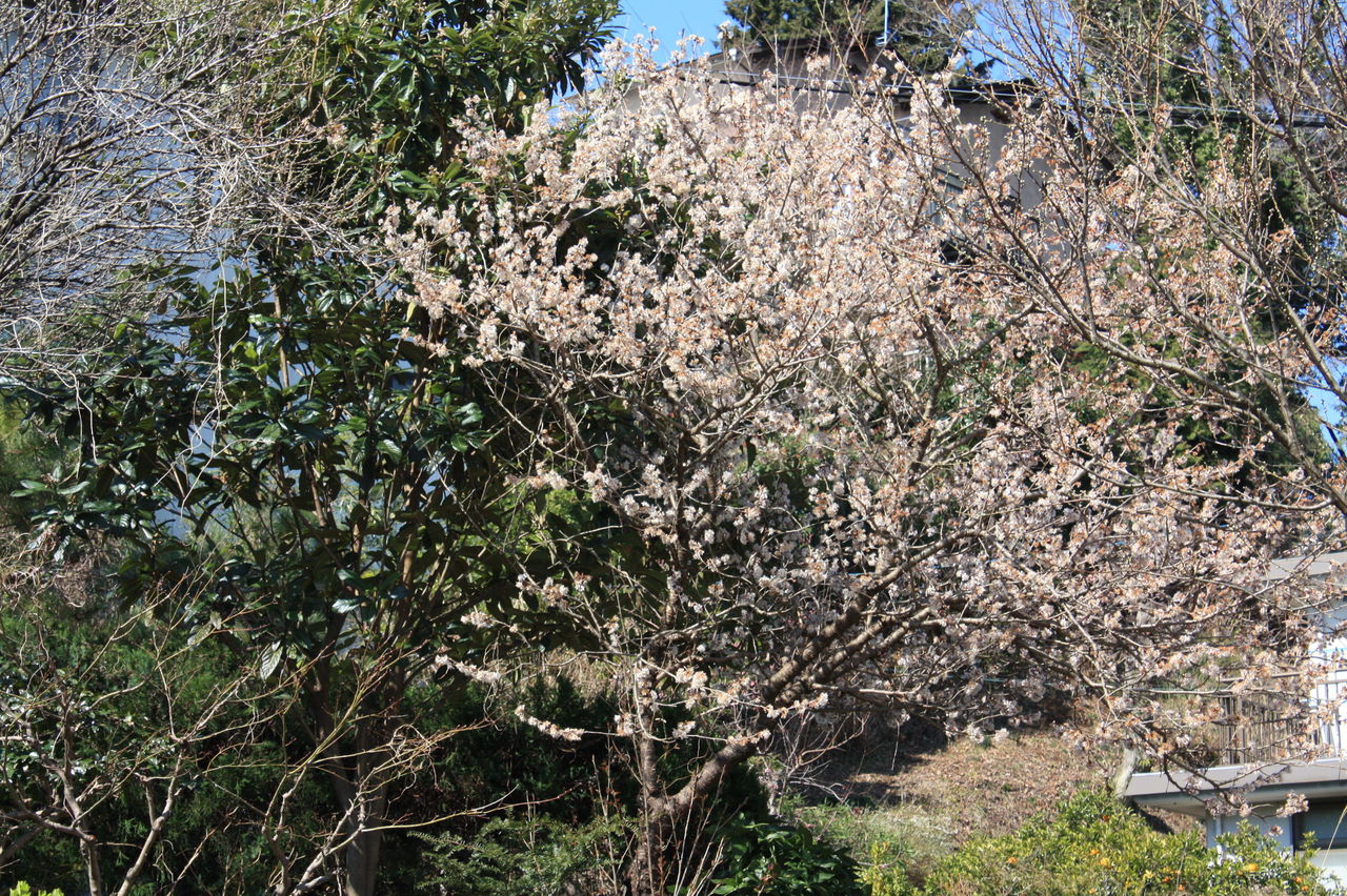 久しぶりに晴れ、開花が遅れた足柄の「春めき桜」が満開になり、