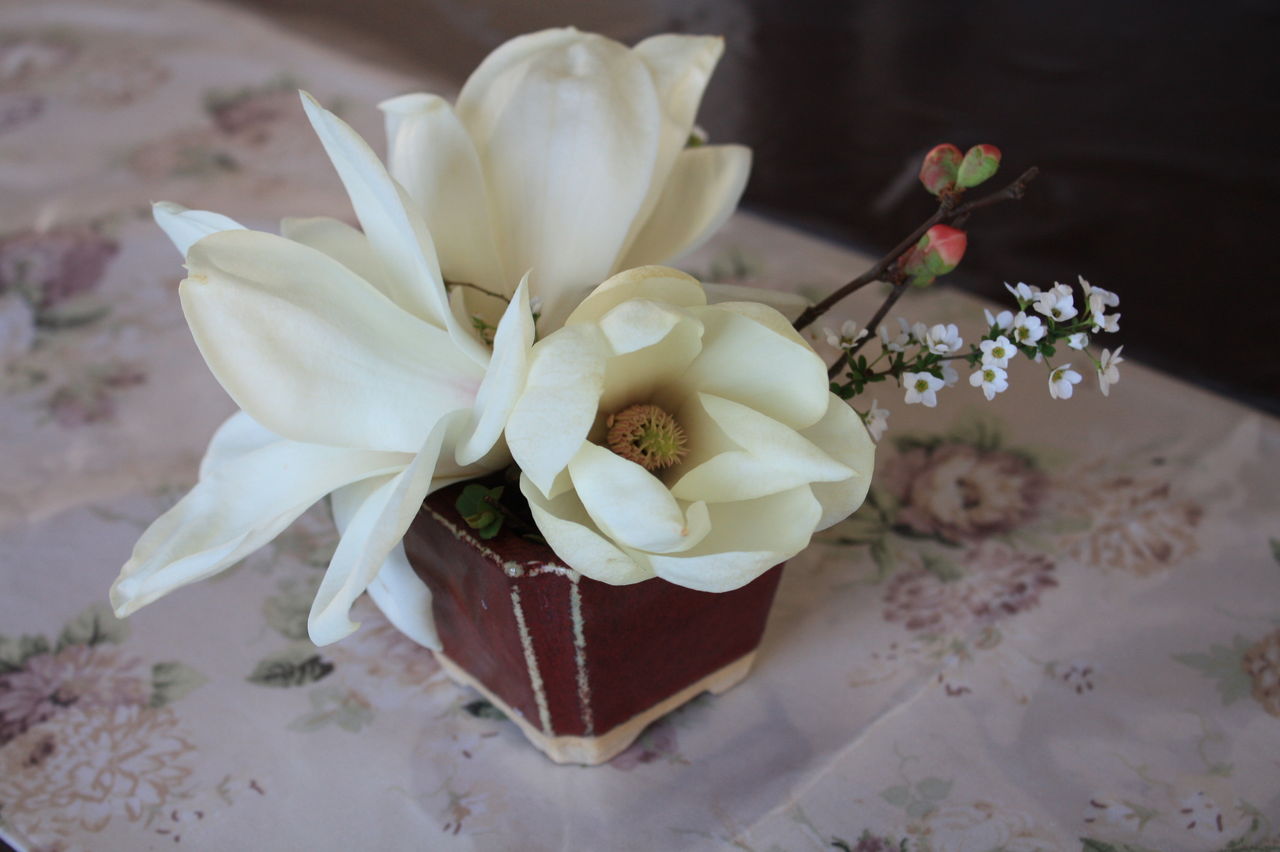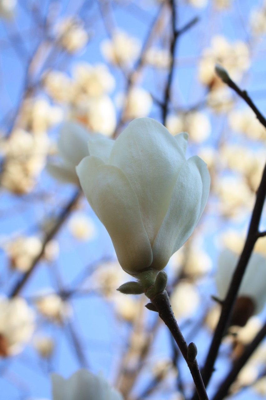白モクレンは蕾が膨らみ、ユキヤナギもこれから白さを増すことでしょう。