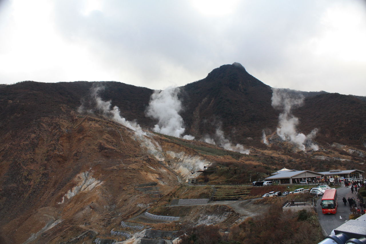 大涌谷は相変わらず噴煙を上げている。