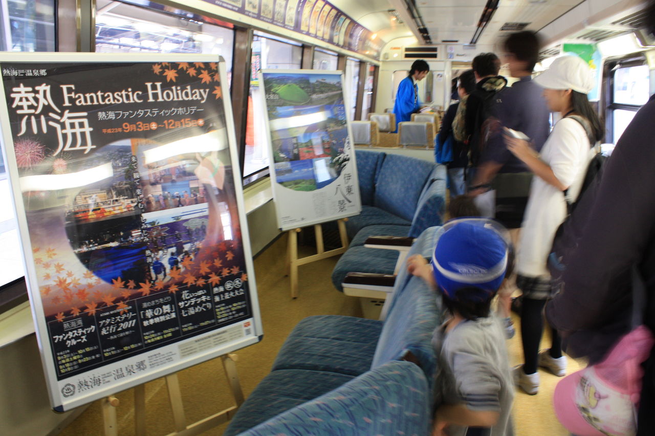 電車の入口では伊豆のイメージガールがお出迎え