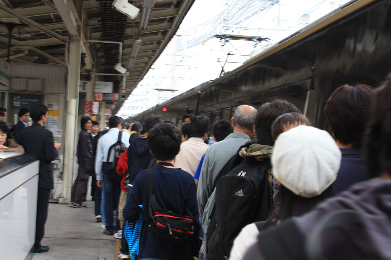 長い列が階段下まで伸びている。