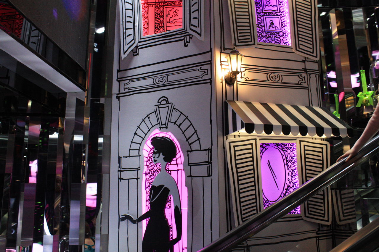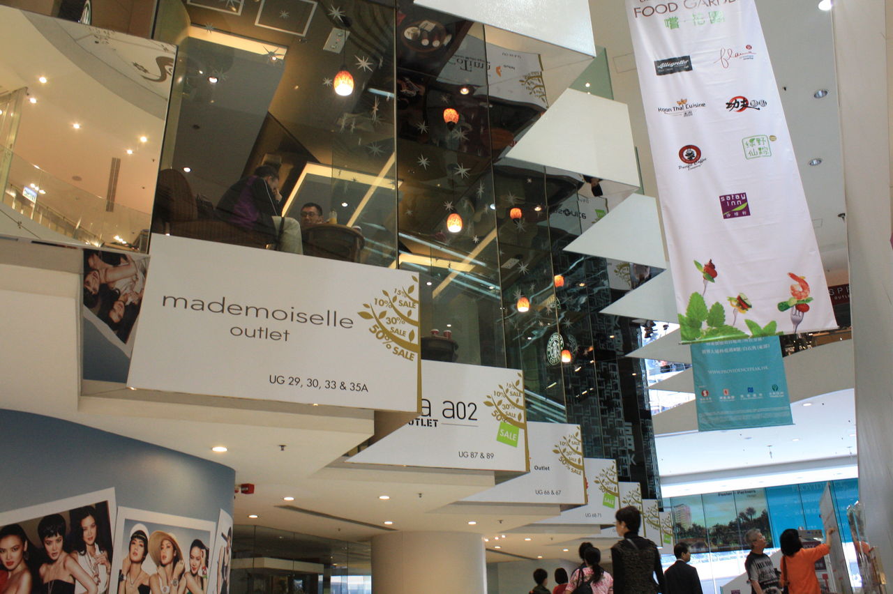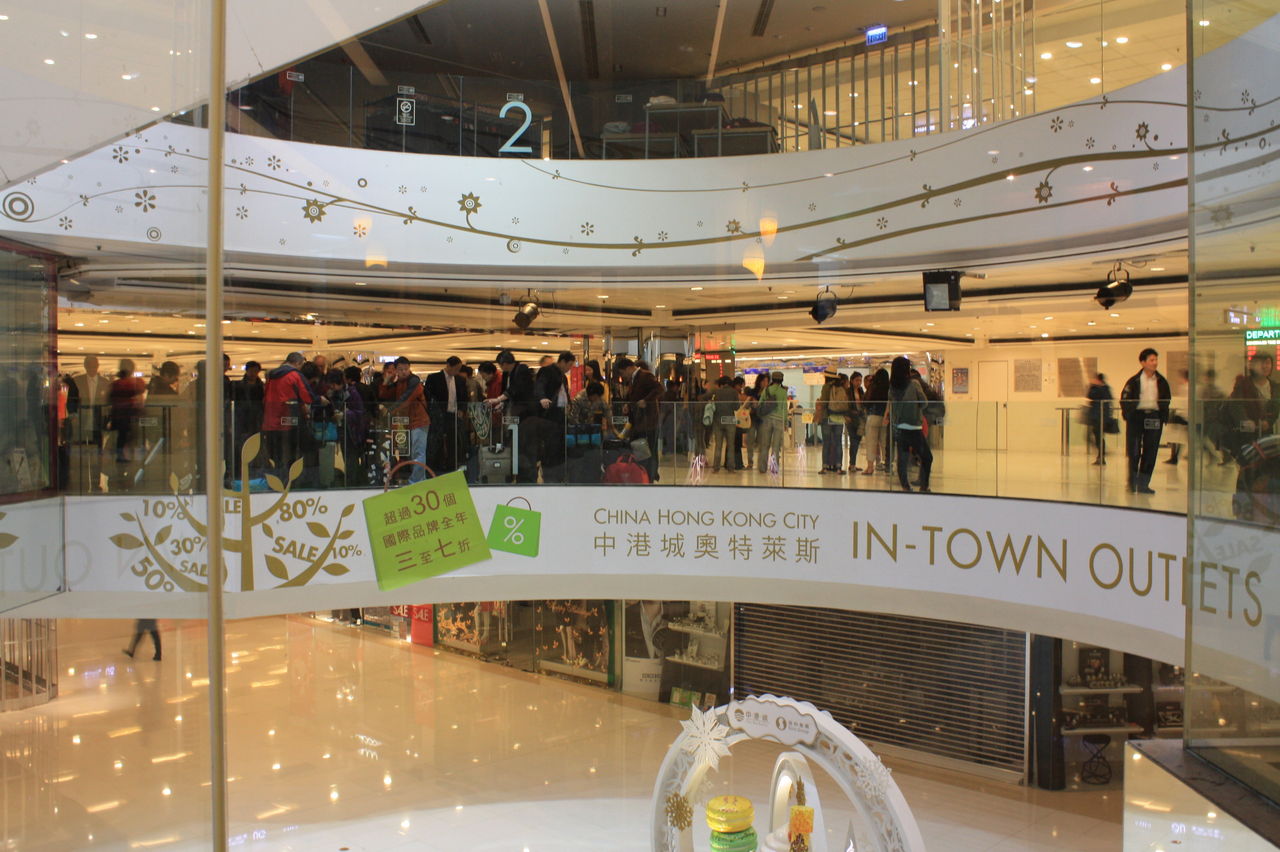 帰りは広東ロード西側のショッピングモールの中の通路を歩き、ホテルの近くまで戻りました。通路はまっ白の壁で覆われています。