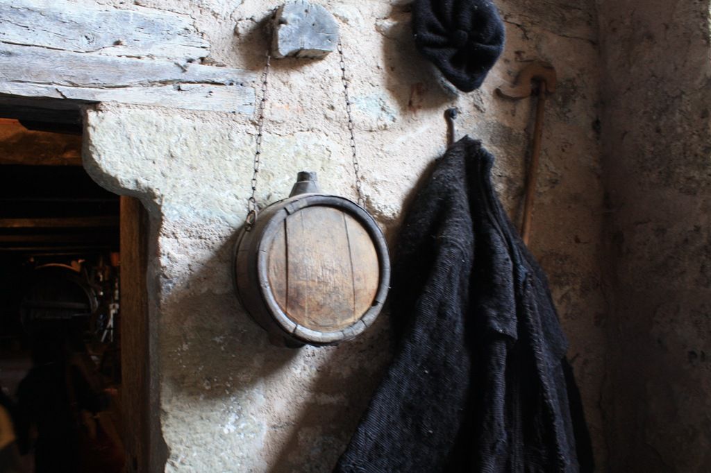 巡礼に行く時などに着るマントと水とうがぶら下がっています。このようなマントと水とうは映画で見かけます。