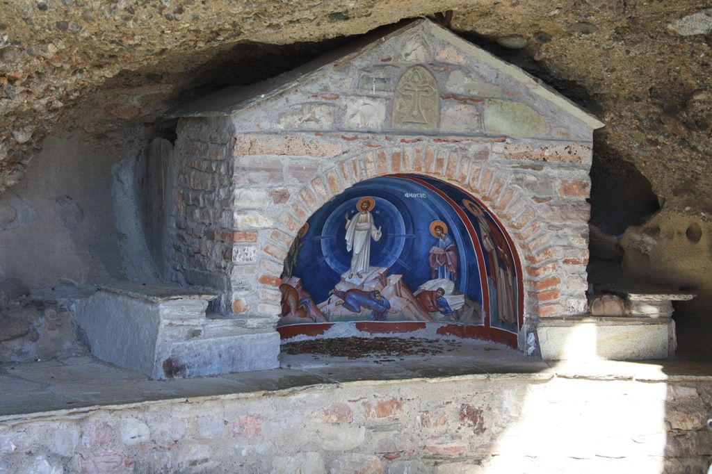 穴の中にフレスコ画が色鮮やかに描かれています。