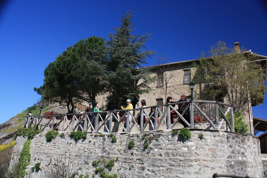 昔はこの塔から綱をおろして荷物を引き揚げていたのです。今は荷物用のロープウエイで運びこんでいます。