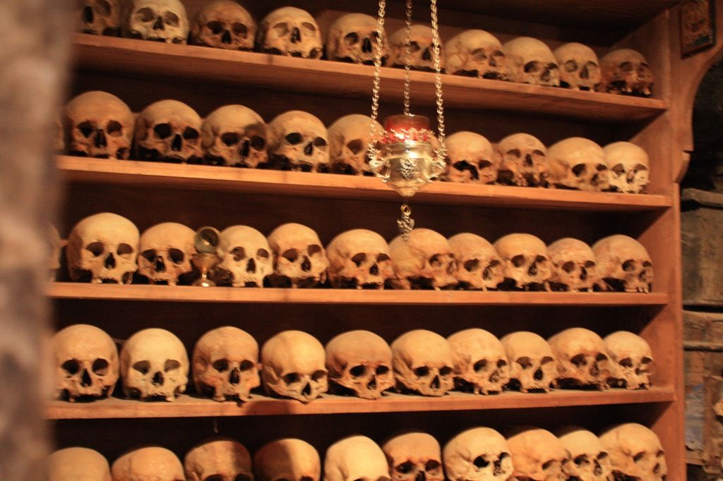 昔、ここで修業していた修道士の骸骨でしょうか?