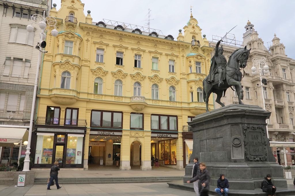 歩いて下り、ザグレブの中心広場イエラチッチ広場に到着しました。