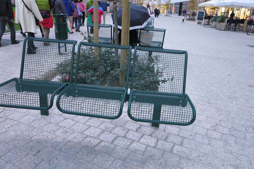 通りにあった網目の椅子。座ってみたところ思ったより心地よかったです。