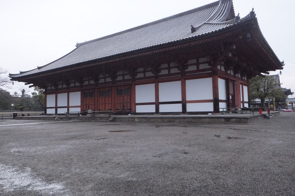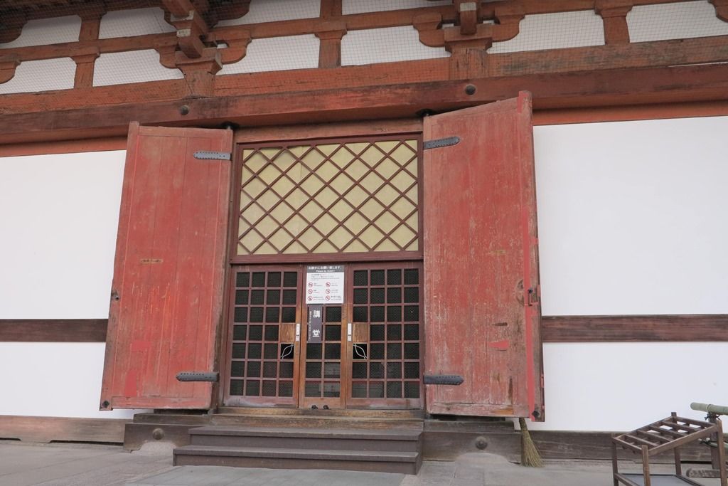 朱色の柱を持つ建物は講堂です。834年に完成したのですが地震・大火で消失し、現在のものは1492年に建造されました。