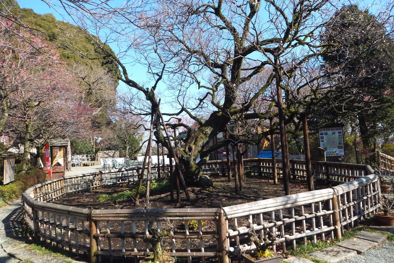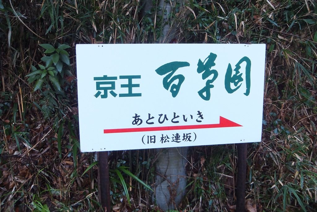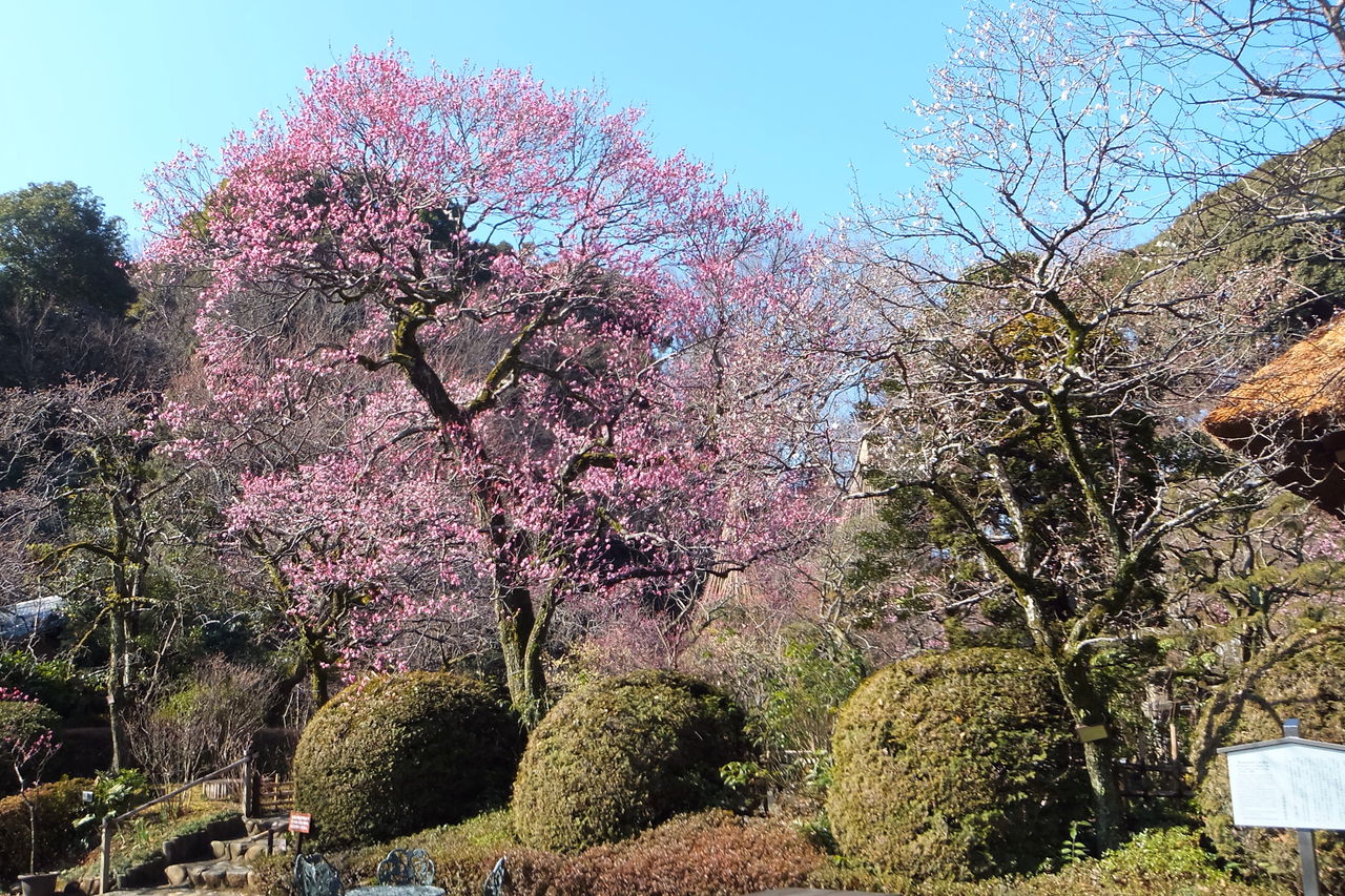 急な坂道を登った先に百草園があります。百草園は江戸時代、享保年間(1716 年〜)、小田原城主大久保候の室であった寿昌院慈岳元長尼が徳川家康の長男・信康追悼のため松連寺を再建しました。その後京王が百草園として管理しています。梅の木が50種類500本植わっています。