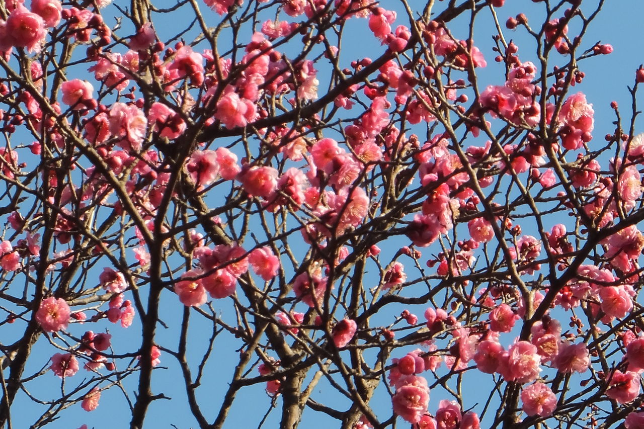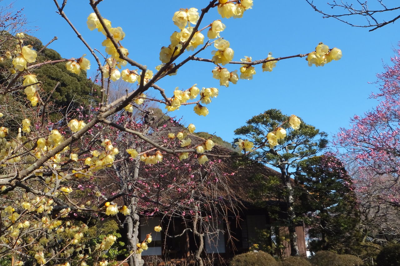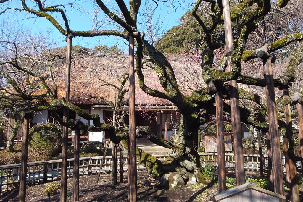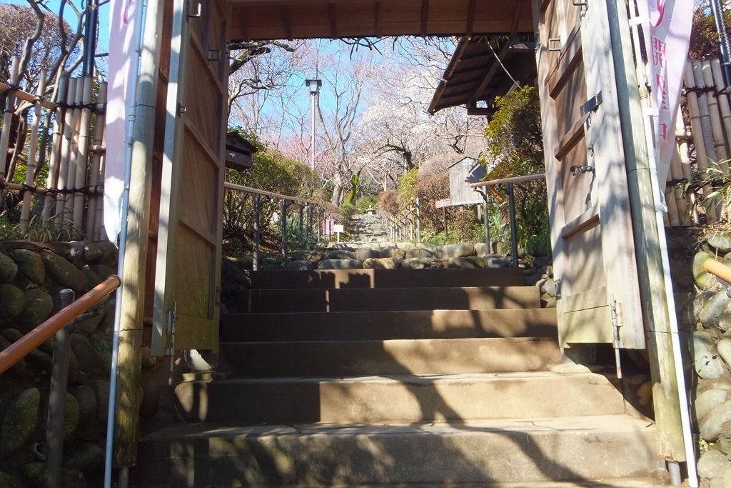 急な坂道を登った先に百草園があります。百草園は江戸時代、享保年間(1716 年〜)、小田原城主大久保候の室であった寿昌院慈岳元長尼が徳川家康の長男・信康追悼のため松連寺を再建しました。その後京王が百草園として管理しています。梅の木が50種類500本植わっています。