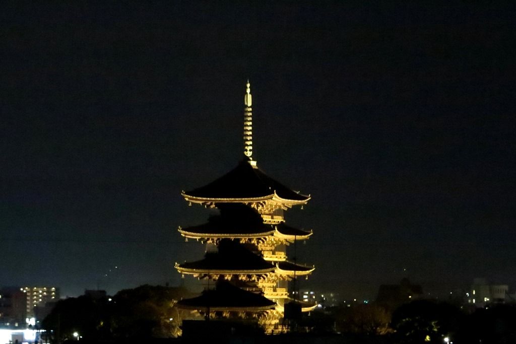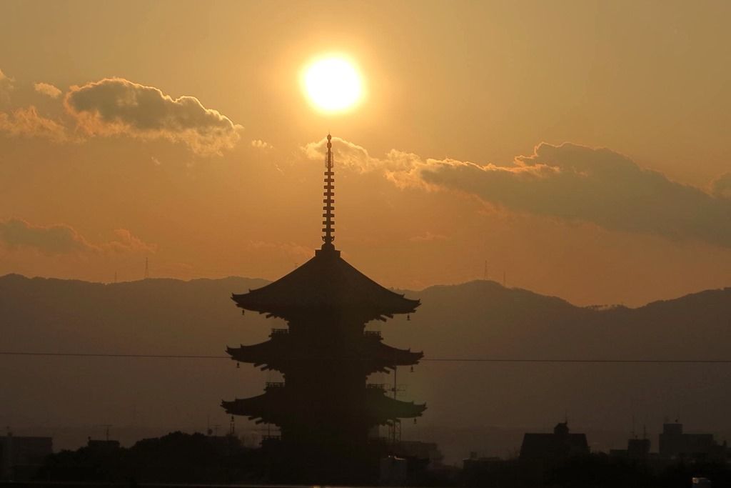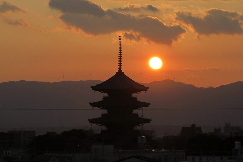 東寺の五重塔は高さ54.8メートルで木造塔としては日本一の高さです。天長3年(826年)空海により、創建着手されるが、実際の創建は空海没後の9世紀末でした。雷火や不審火で4回焼失しており、現在の塔は5代目で、寛永21年(1644年)徳川家光の寄進で建てられたものです。