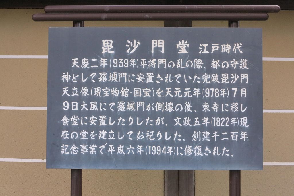 春と秋に公開される東寺・宝物館で、この兜跋毘沙門天立像(とばつびしゃもんてんりゅうぞう)を鑑賞することができるとありました。国宝なので毘沙門堂には置いていないと思われます。