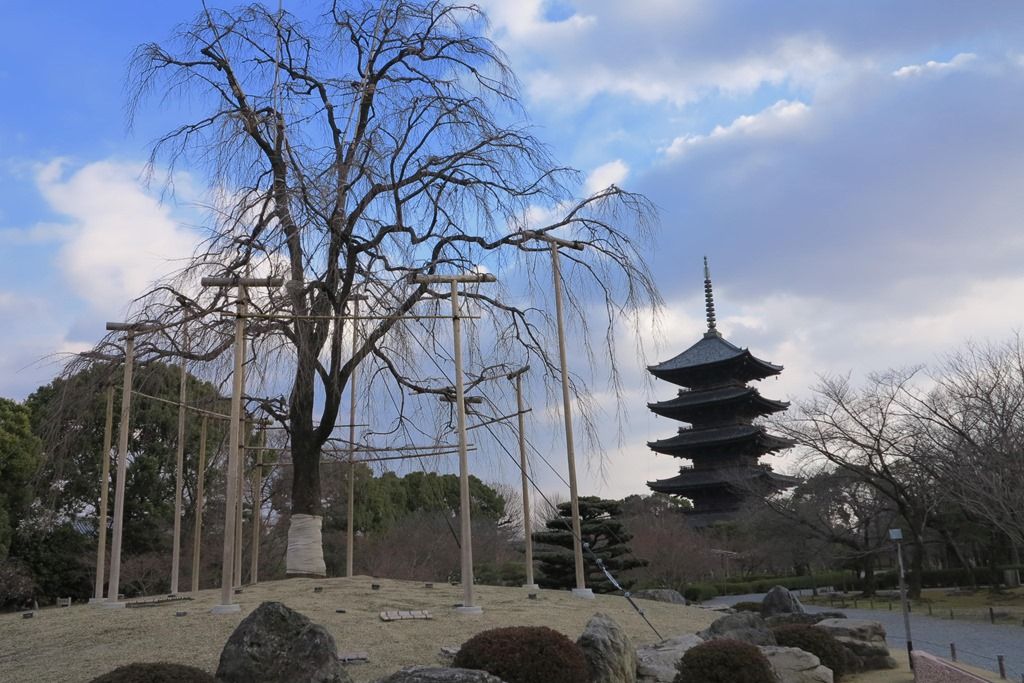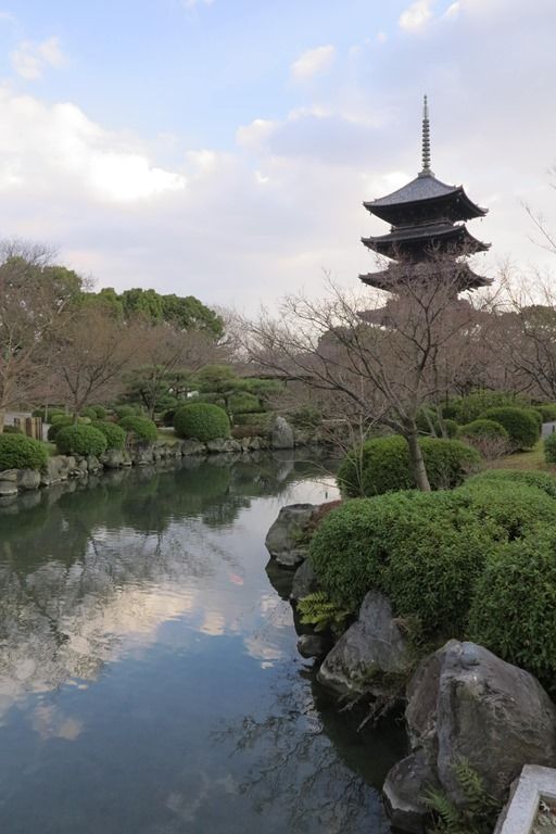 池があり、その向こうに五重塔があります。東寺の東南の隅という位置です。