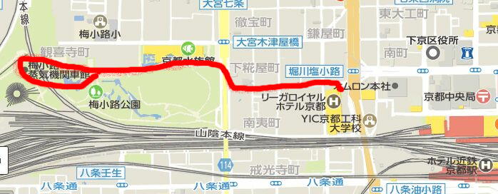 ホテルを出て、最初は歩いて梅小路蒸気機関車館を目指しました。