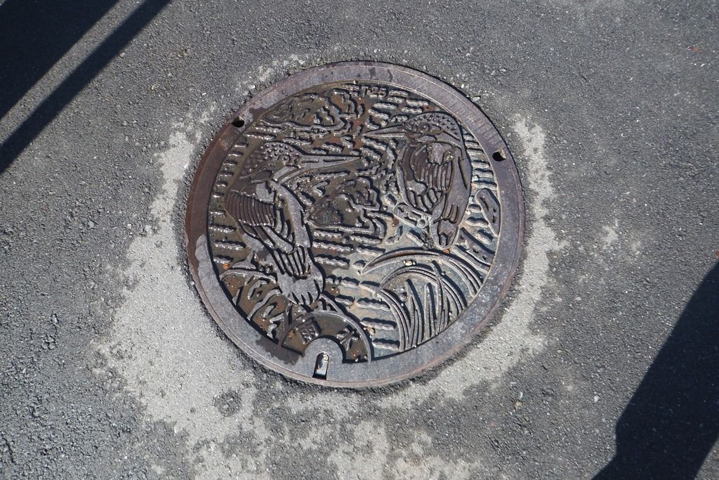 百草園は日野市に位置するので、日野市の市鳥カワセミが描かれています。