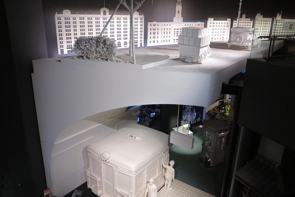 蒸気機関車の操車場である扇型車庫です。手前にターンテーブルがあります。