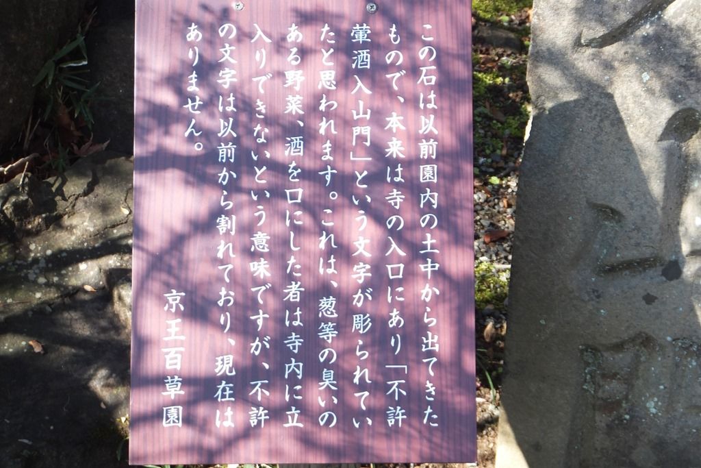 以前、青蓮寺の入口にあった石には「臭いある野菜や酒を口にしたものは入らないでください」という意味の言葉が書かれていました。