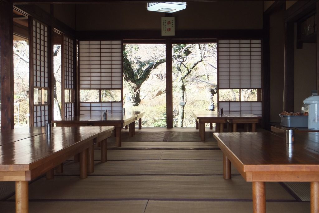 左が臨池亭、正面が滴翠軒です。二つの棟は渡り廊下でつながっています。