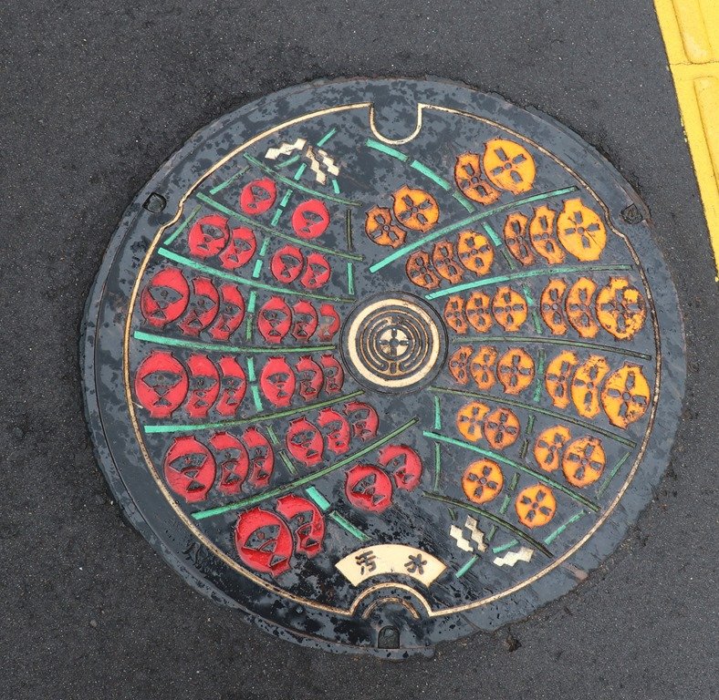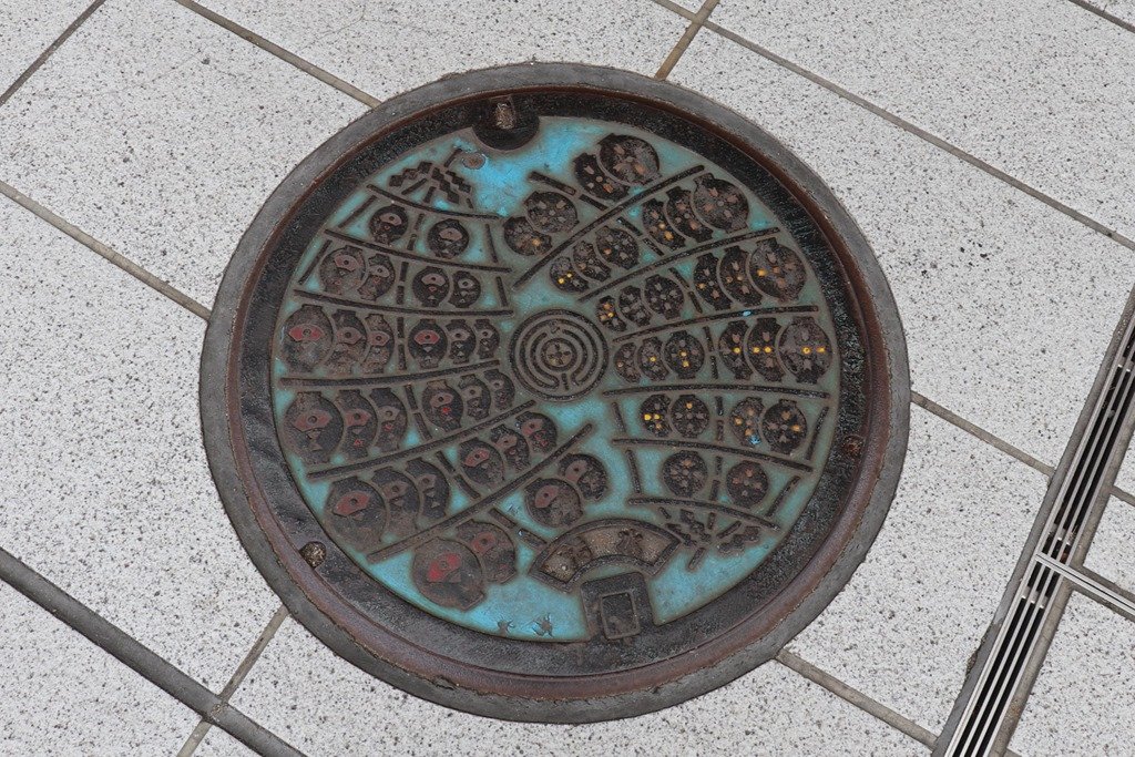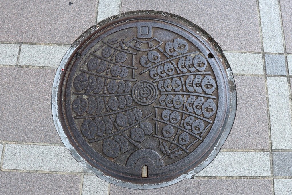 竿燈デザインのマンホールの蓋発見。