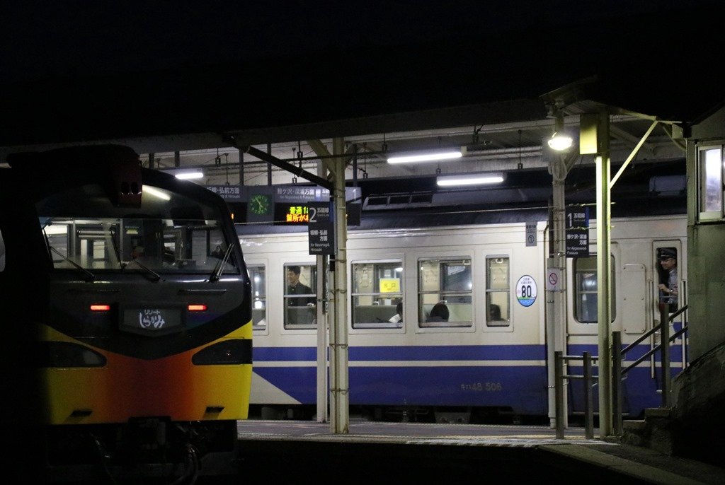 五所川原駅に到着 17:49で真っ暗になっていました。