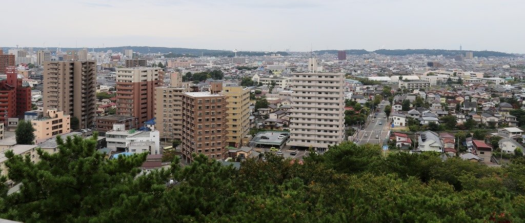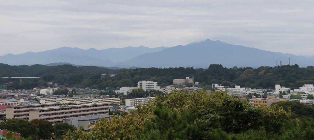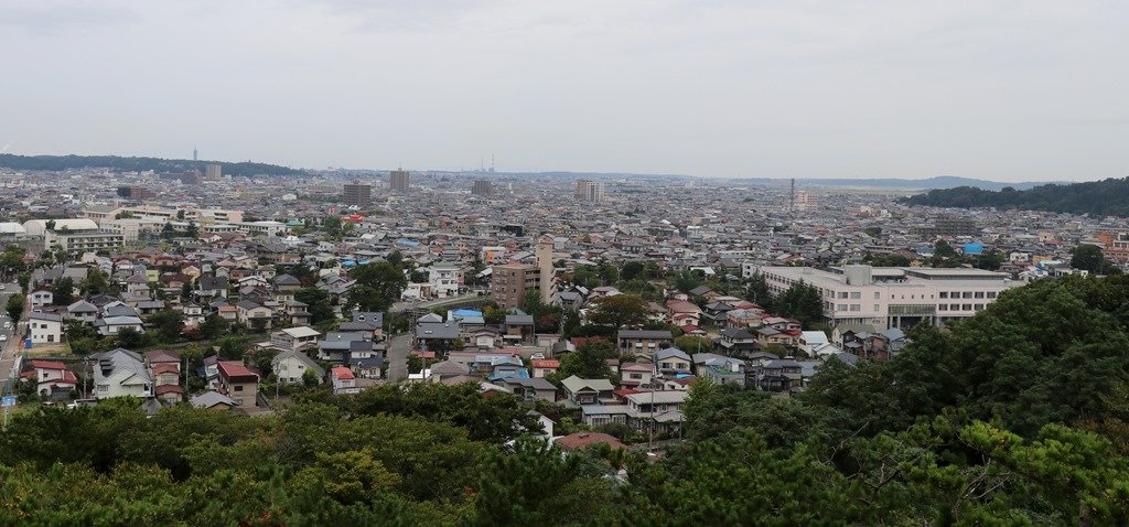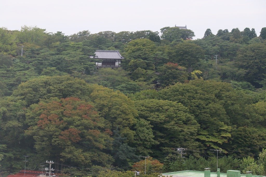佐竹氏の久保田城方面です。山の中腹に建物が見えます。