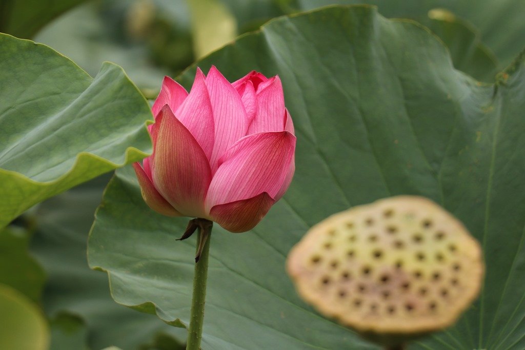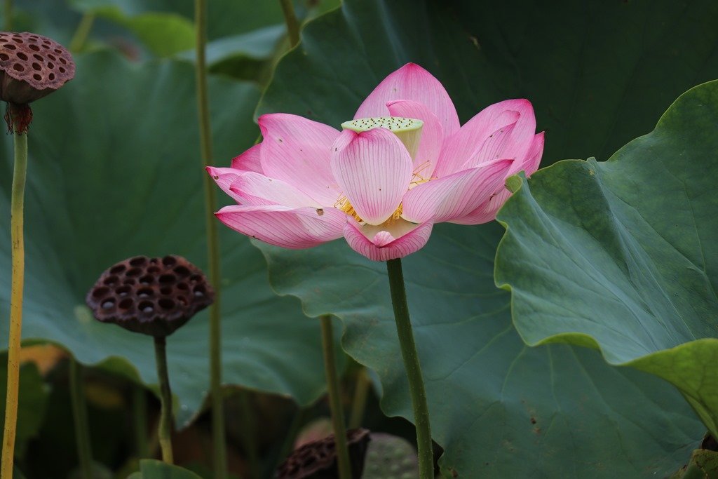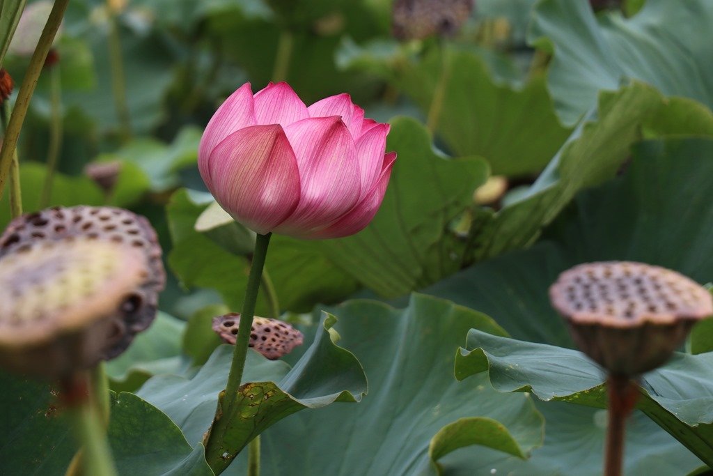 大手門の堀は蓮で埋まっていました。残念ながら蓮の花のシーズンは終了ですが、所々咲いているのを見つけました。