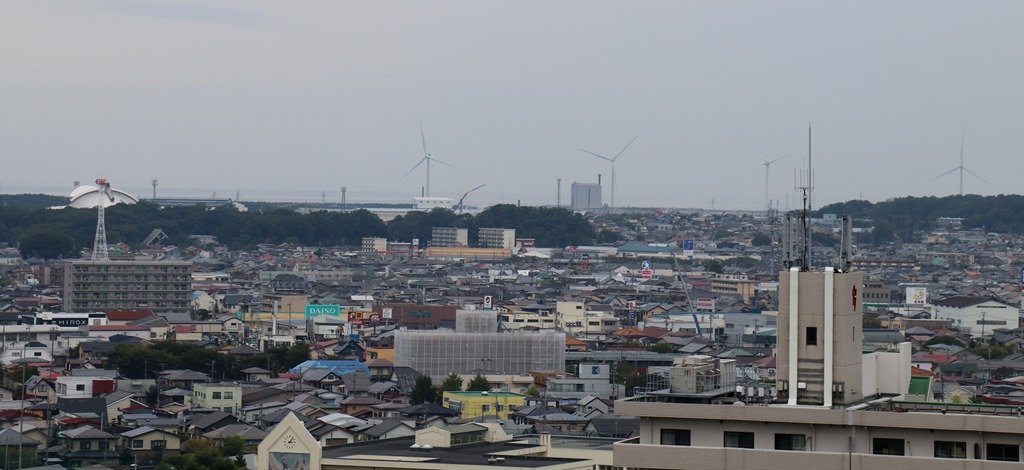 風力発電の羽根が列ぶ日本海方面です。