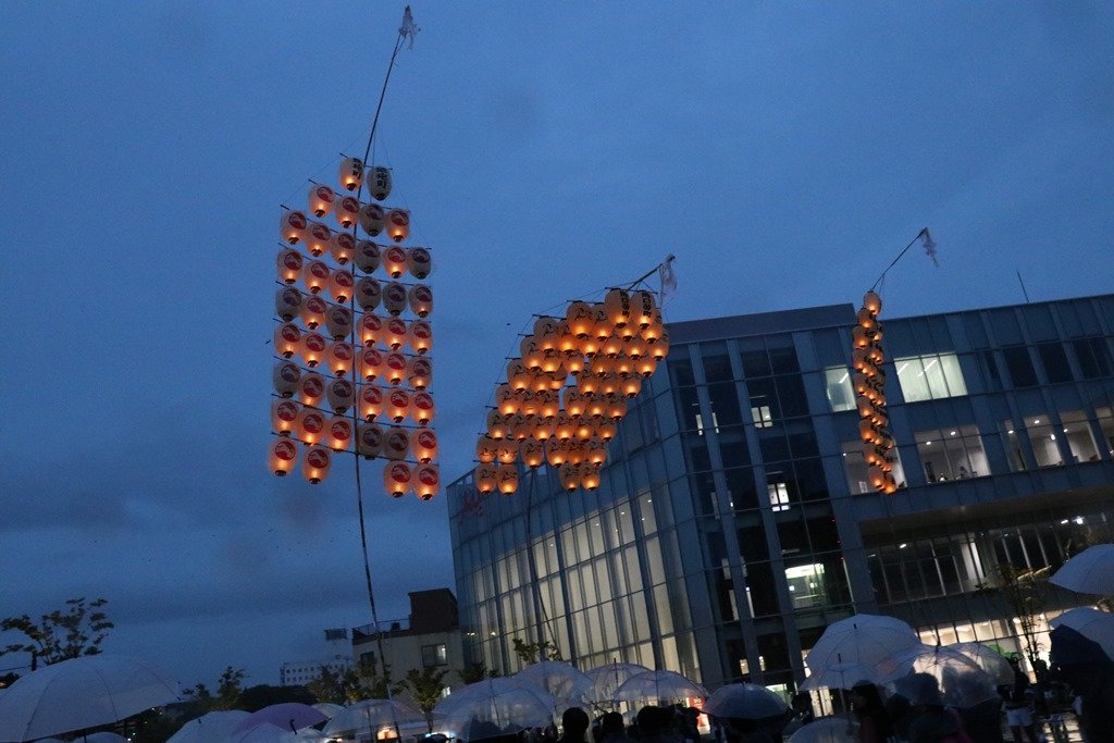 竿燈の見物者の殆どが白いビニール傘をさしていました。竿燈が終わって帰るのは韓国人の観光客で秋田キャッスルホテルへ入りました。韓国人のためのサービスだったのでしょうか?