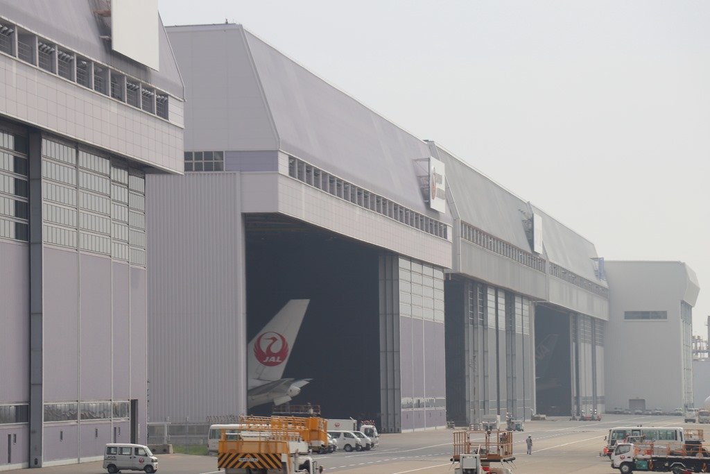 JAL整備工場です。以前、工場見学でここから着陸する飛行機の写真を撮影しました。