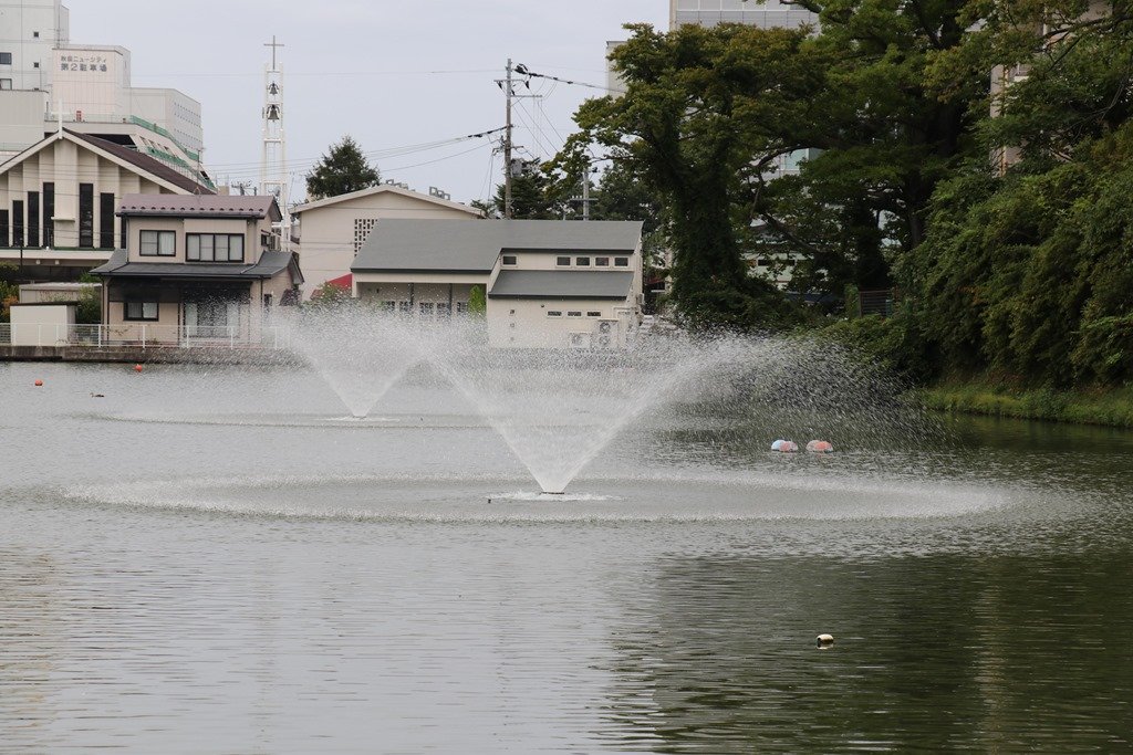 穴門の堀に噴水が二基と思っていましたが、堀の浄化のための曝気筒です。
