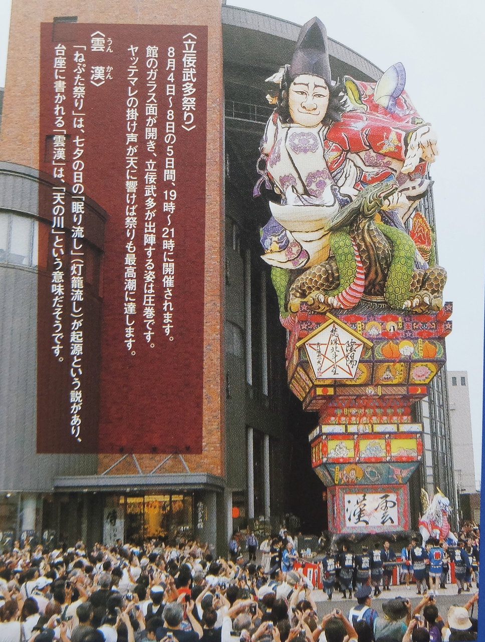 祭りの日に立佞武多館から出陣する立佞武多(立佞武多館のパンフレットより)