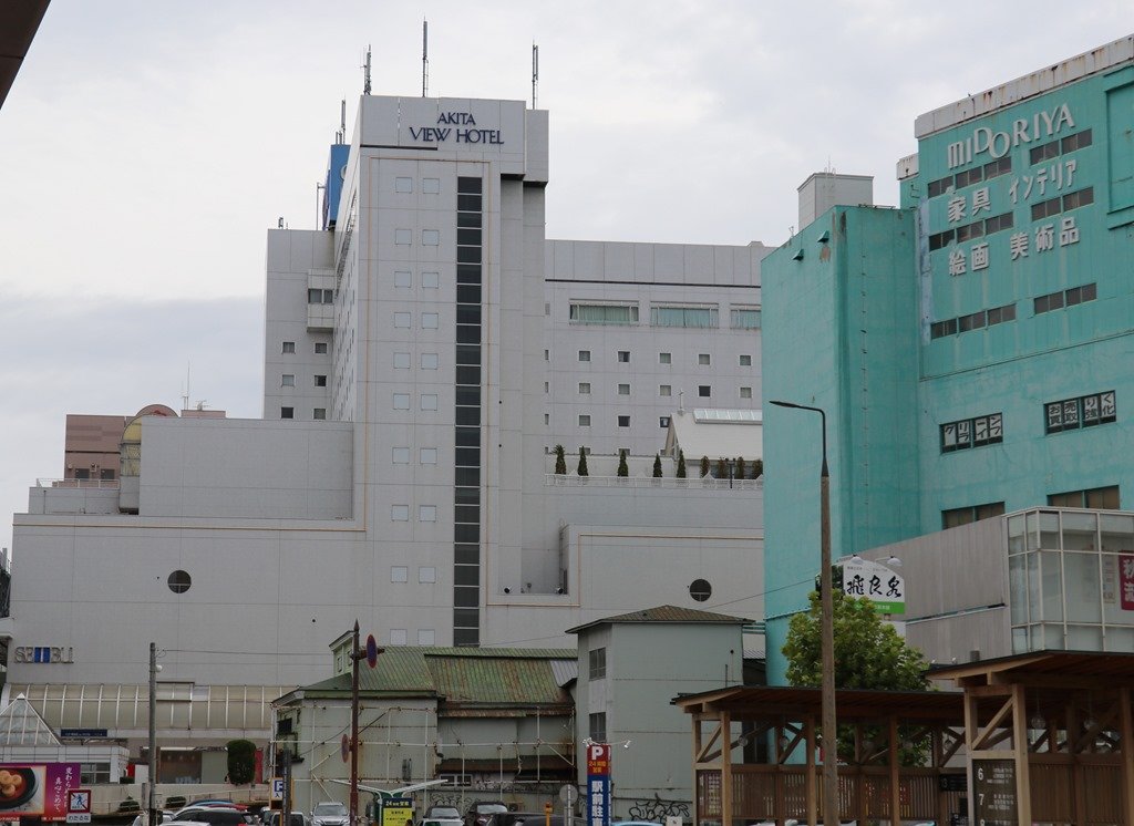 秋田駅から見える本日の宿泊ビューホテルです。ホテルの下は西武デパートでした。