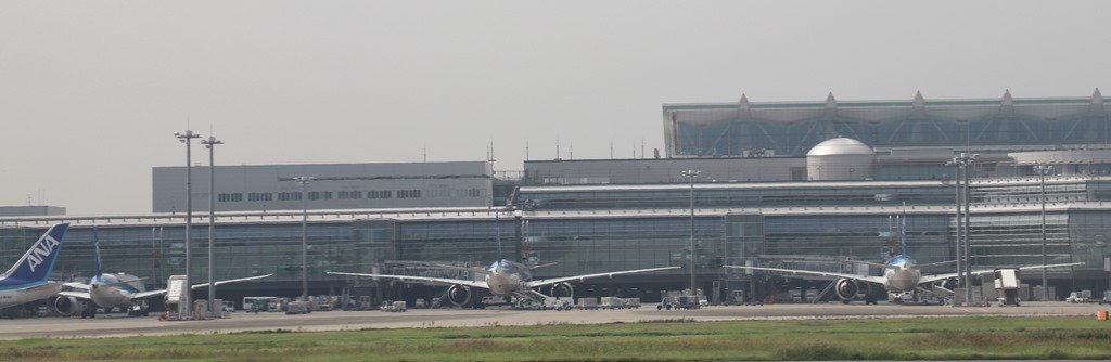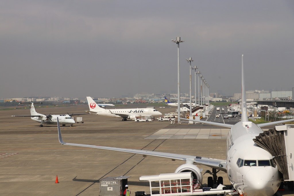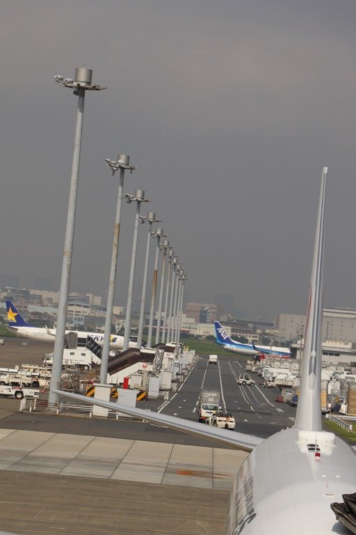 以下、飛行機に乗り込み滑走路に向かう途中の光景です。