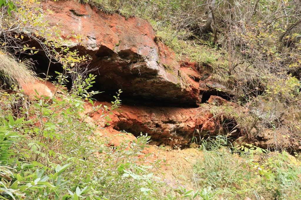 この地域は露天掘りで鉄鉱石を採掘していた地域です。岩肌は鉄分を含んでいるので茶色い色をしています。