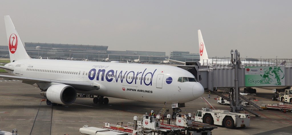 羽田空港ではJALのOne World塗装特別機を見つけました。One Worldグループ10周年を記念しての印字で、国内線は3機のみの貴重な機体です。