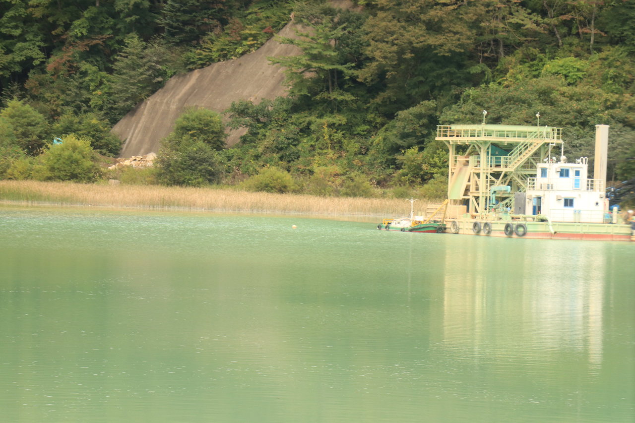 チャツボミゴケ公園地獄穴の湧水は下流のダムで一旦止められpH調整され下流へ流されます。