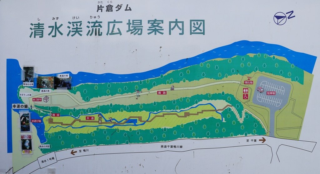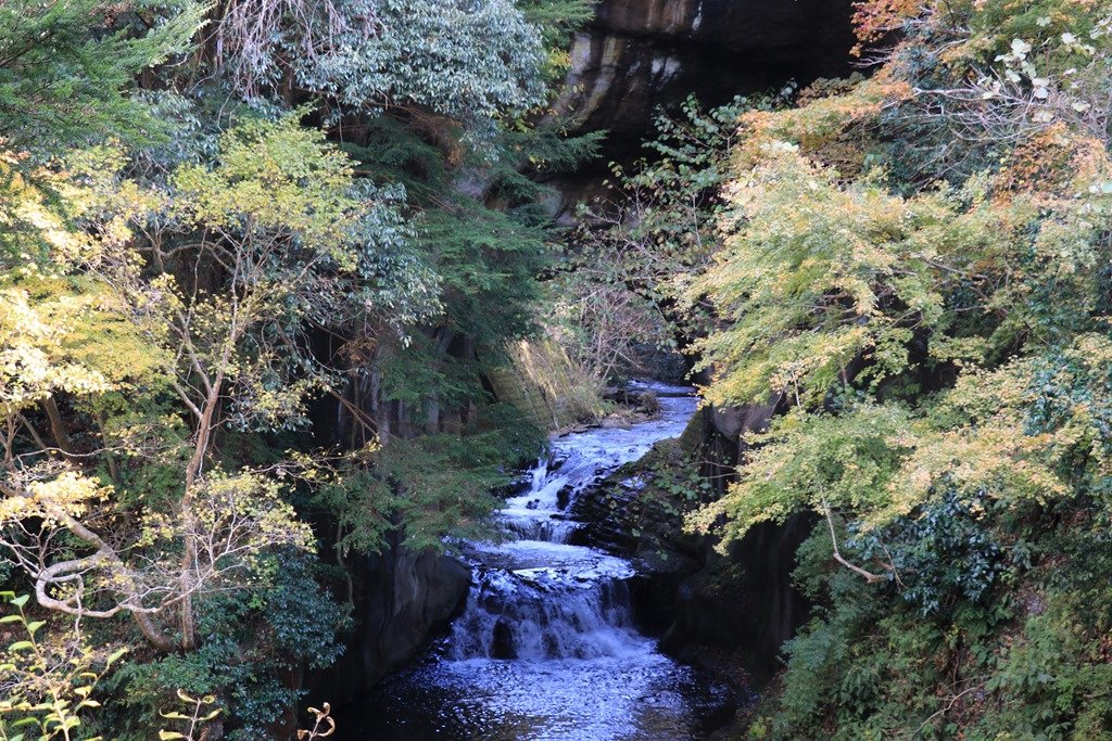 下の写真の展望台からは半分しか濃溝の滝が見えません。