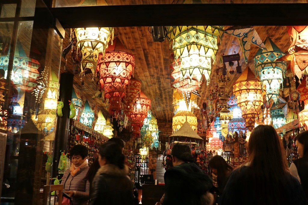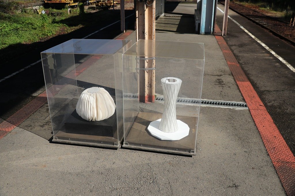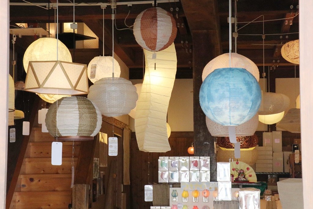 美濃和紙を使った柔らかい光のあかりアートが陳列されていました。