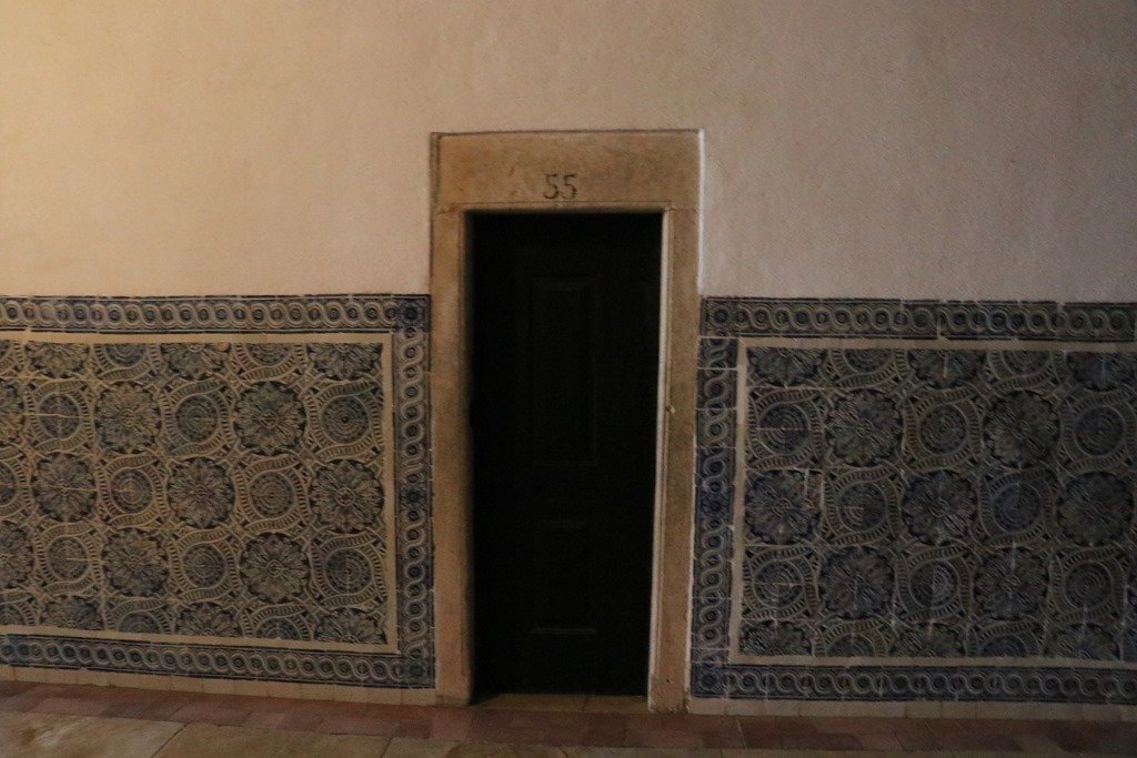 トイレの入口はスッキリしたアズレージョで飾られています。