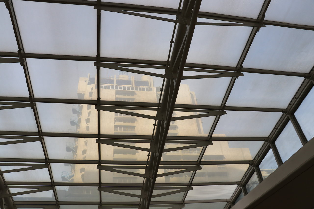 ブルーのシェードがかかっているお店です。