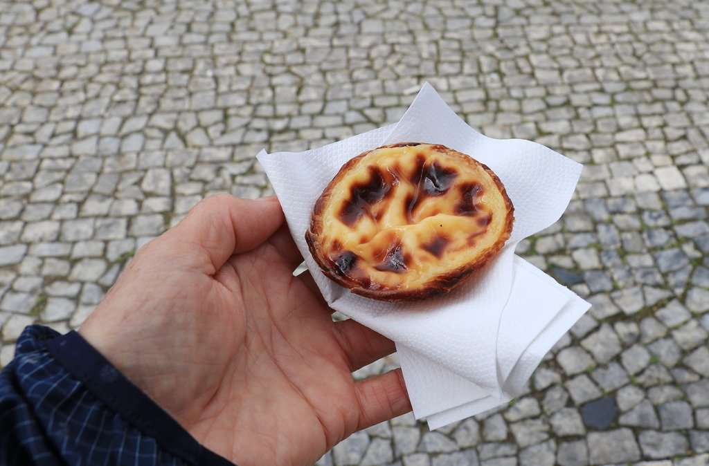 公園前でメンバーは添乗員さんから一個づつエッグタルトを受け取りました。