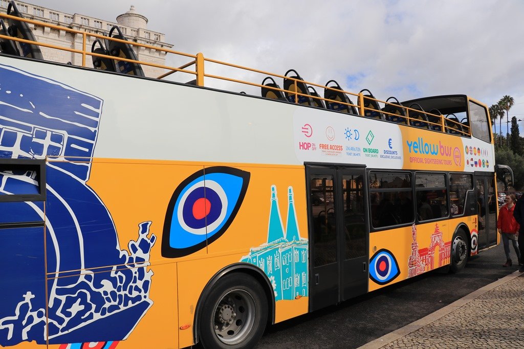 ジェロニモス修道院を出て通りを歩いていると2階建オープントップバスが通りました。