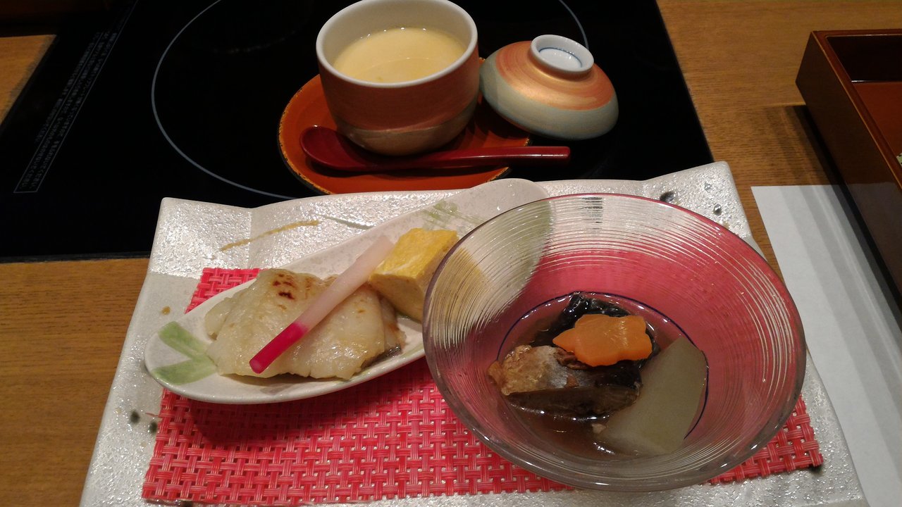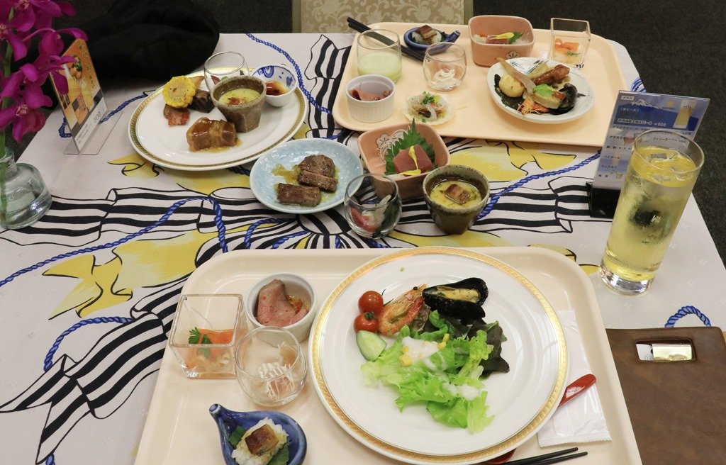 エビ、ムール貝、ローストビーフ、ステーキ、お刺身、うな丼・・・、茶碗蒸しにもうなぎが入っていました。