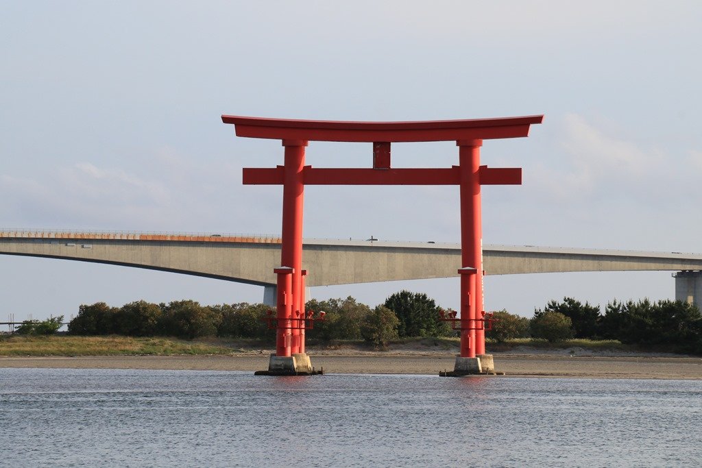 鳥居の高さは18mで、昭和48年に観光用として建てられたものです。