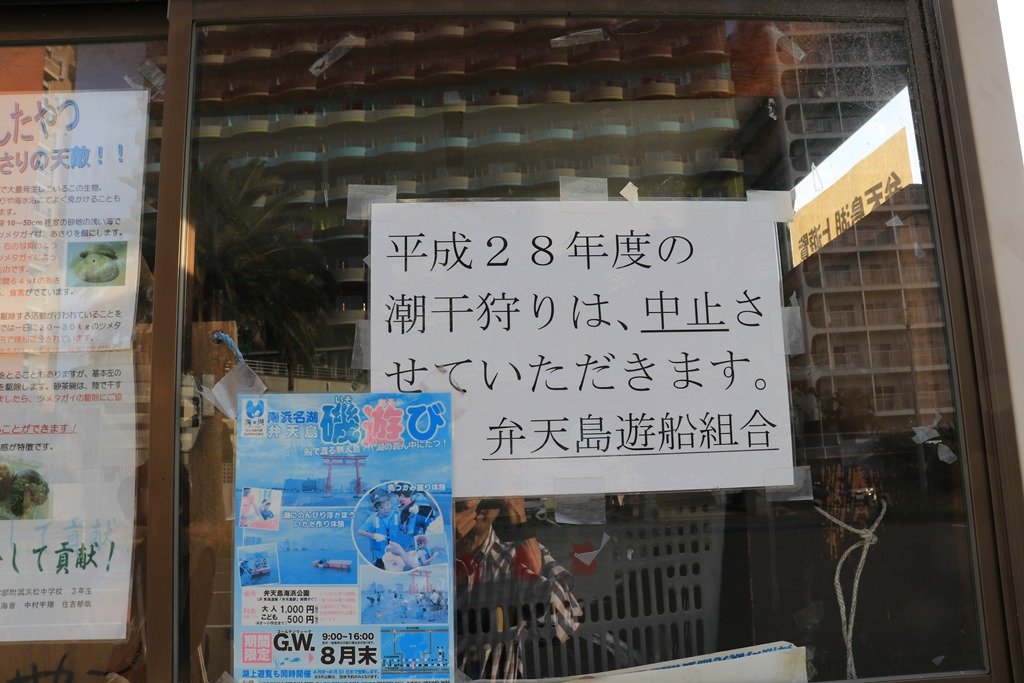 弁天島は潮干狩りで有名ですが、2年続いて潮干狩り中止です。
