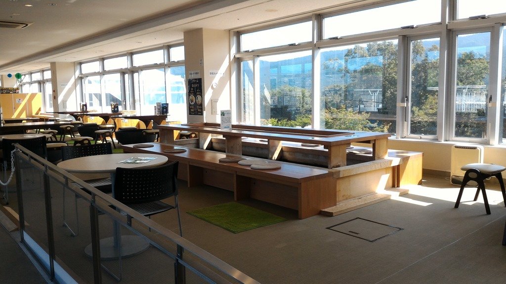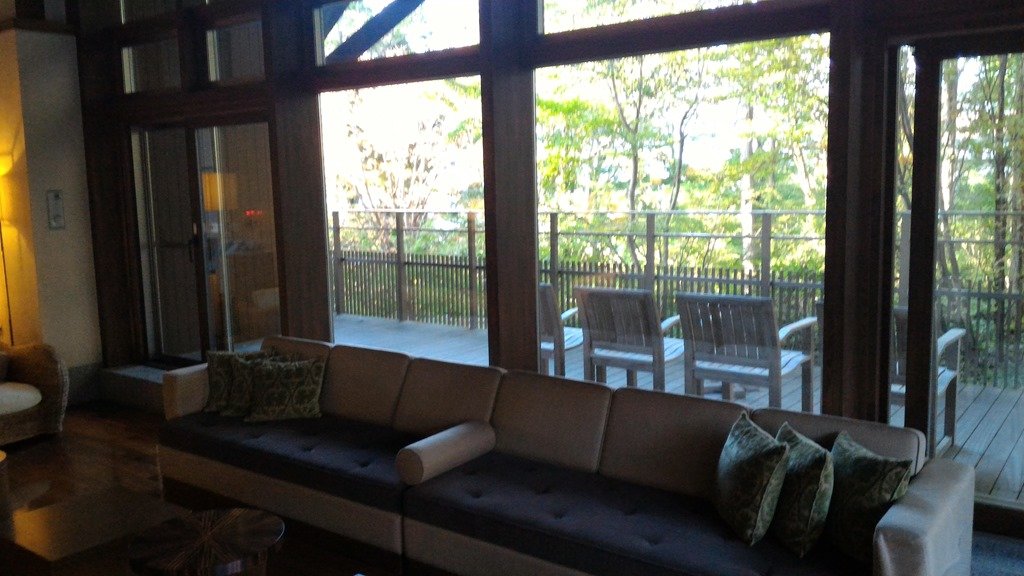 ロビーは三角形の大きな窓の広々とした空間で保養所というよりリゾートホテルという感じです。コーヒーメーカーが置いてありました。