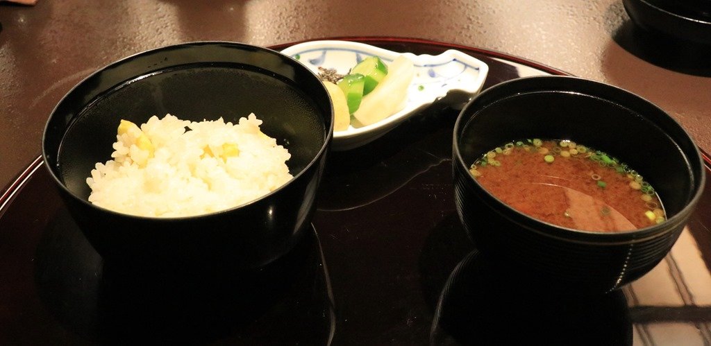もち米の蒸飯の上に大きな零余子(むかご)と塩昆布が乗っていました。